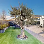 Passage Saint Pierreから4kmの距離離れたところにあるベッドルーム4室のVilla "La Recree Toulousaine " Clim & Spa-12 Couchages Cugnauxには、庭園の景色を望むテラスがあります。